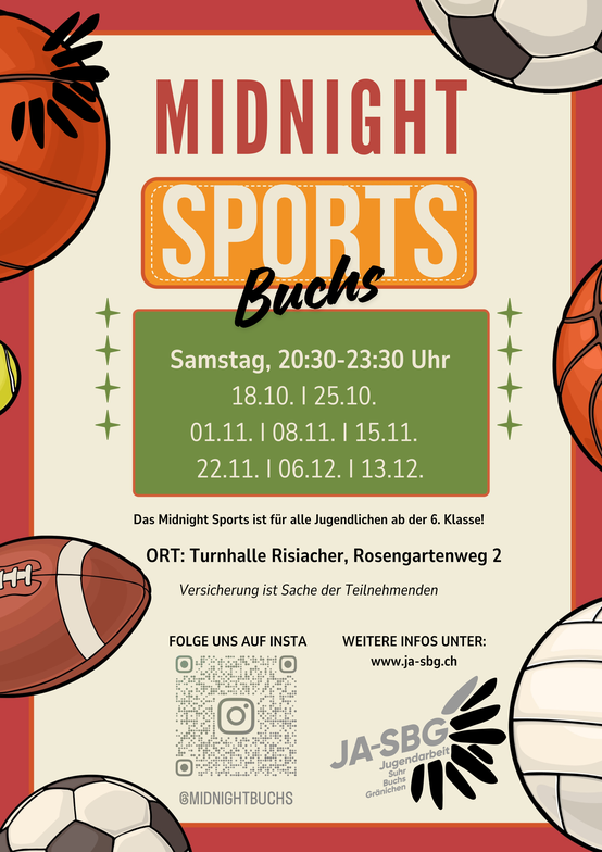 Die Turnhalle Risiacher ist jeden Samstag ab 20.30 Uhr bis 23.30 Uhr offen. Das Angebot ist für Jugendliche ab der 6. Klasse. Zudem ist es kostenlos und freiwillig.